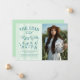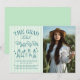 Celebre seu graduado com um estilo moderno e sofisticado com esses elegantes cartões de anúncio de formatura. Com um fundo riscado de verde e branco, o design apresenta o título ousado “THE GRAD CLUB” (O Clube dos Formandos) combinado com uma ilustração divertida de formandos lançando seus chapéus no ar.