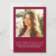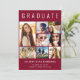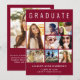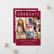 Anúncio de graduação vermelho de burgundy moderno com "FORMANDO" em letras grandes brancas, uma colagem de sete fotos e seu nome, ano de aula e escola em tipografia branca moderna. No verso, adicione uma foto adicional e uma mensagem personalizada.