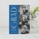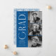 Anúncio de graduação de na moda com três fotos localizadas à direita do design em um layout vertical. "Formando" é apresentado em caracteres brancos, modernos de arte, com um fundo azul. Personalize o anúncio moderno da graduação de fotos, adicionando o nome do formando, o ano de graduação e o nome da escola. O design inverte para exibir um plano de fundo geométrico azul e branco. Perfeito para segundos graus e formandos!
