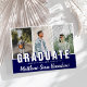 Celebre suas notícias com amigos e familiares e crie o anúncio perfeito com este modelo de "Cartão de Anúncio de Graduação do Formando Azul 3 Fotos". Este design de alta qualidade é fácil de personalizar para ser exclusivamente seu! Este anúncio de graduação de fotos apresenta 3 (três) das fotos favoritas de seu formando em uma colagem moderna com seu ano de aula, nome em tipografia de script de caligrafia e segundo grau ou faculdade. Vamos comemora o formando!