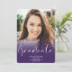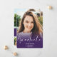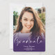 Um formando roxo moderno, simples, com 4 fotos anunciadas para a graduação. Adicione sua mensagem no verso.