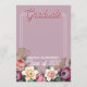 Parabéns único e moderno anúncio e cartão de convite de festas de celebração do formando, enquadrado com um belo primavera de cor d'água colorida e uma coroa floral de verão num clássico mauve branco pastel esticado e esticado fundo cor-de-rosa. Com espaço para personalizar ou personalizar com uma foto, o nome do formando, o ano de graduação, o segundo grau, o nome da futura faculdade ou universidade e as informações sobre eventos de festas de celebração. Deixe a família, amigos e vizinhos saberem que há um formando feliz pronto para conquistar o mundo, e convide todos a virem celebrar o feliz evento com vocês!