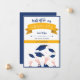 A moderna placa de lançamento de chapéus Whimsical off Graduation é uma opção vibrante e contemporânea. Com sua paleta de cor azul e laranja, seu conceito lúdico e tipografia, ele captura o espírito celebratório de segundos graus, faculdade ou graduações universitárias. A design cômica do cartão, com fitas laranja, simboliza unidade e orgulho. Este cartão de lançamento é uma forma alegre e na moda para compartilhar a realização da graduação, servindo como um guardião que representa o trabalho e dedicação do duro.