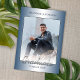 Cartão de anúncio de formando com parabéns exclusivos e modernos com um plano de fundo clássico azul escuro, cinza e gradiente de cor branca. Com espaço para personalizar ou personalizar com uma foto, o nome do formando, ano de graduação, segundo grau e futuro nome da faculdade ou universidade. Deixe a família, amigos e vizinhos saberem que há um formando feliz pronto para conquistar o mundo, e convide todos a virem celebrar o feliz evento com vocês!