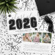 Um anúncio clássico, porém moderno, de graduação horizontal. A frente apresenta uma "Classe de 2025" sobredimensionada em preto-e-branco com realces de cinza elegantes. Dois ícones de boné de formatura acrescentam um toque comemorativo, com espaço abaixo para o nome do formando e a escola. As cores podem ser personalizadas para corresponder às cores da escola para uma aparência personalizada. O verso apresenta uma colagem de fotos com três pontos de imagem e espaço abaixo para uma mensagem sincera dos pais, destacando realizações e expressando orgulho. Totalmente personalizável, este design é perfeito para celebrar este marco importante.