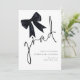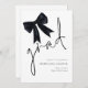 Graduação de Formando de Script de Arco Preto Minimalista. Disponível digitalmente e impresso. Este design tem um script de estilo de escrita manual de conjunto informal para o cabeçalho principal, formando e personalização fácil da tipografia no lado inferior direito com seus detalhes. Com uma ilustração do arco de coquete de na moda.