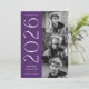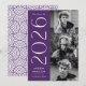 Anúncio de graduação de na moda com três fotos localizadas à direita do design em um layout vertical. "2023" é apresentado em letras brancas, modernas de arte, com um fundo roxo. Personalize o anúncio moderno da graduação de fotos, adicionando o nome do formando e o nome da escola. A design é revertida para exibir um plano de fundo geométrico roxo e branco. Perfeito para segundos graus e formandos!