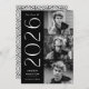 Anúncio de graduação de na moda com três fotos localizadas à direita do design em um layout vertical. "2025" é apresentado em letras brancas, modernas de arte, com fundo preto. Personalize o anúncio moderno da graduação de fotos, adicionando o nome do formando e o nome da escola. A design reverte para exibir um plano de fundo geométrico preto e branco. Perfeito para segundos graus e formandos!