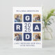 Anuncie a sua formatura a amigos e familiares com estes cartões de convites para a graduação em colagem de fotografias divertidos e modernos. Personalize com 4 de suas fotos favoritas do mais velho ou da faculdade e personalize com o ano de graduação, nome, segundo grau ou faculdade e qualquer mensagem pessoal no verso. Estes cartões únicos de tendências e na moda de graduação vão criar uma impressão duradoura com a família, amigos e seus colegas de classe! COPYRIGHT © 2020 Judy Burrows, Black Dog Art - Todos Os Direitos Reservados. Anúncio de Graduação de Foto Azul Branco 4 com Marinho Único