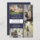 Para uma aparência elegante, escolha este estilo de bloco de cores azul escuro e branco moderno, quatro design de anúncio de graduação de fotos da Holiday Hearts Designs. Simplesmente mude as fotos para seu formando e adicione seus detalhes (nome, escola, ano e data de conclusão). A parte traseira apresenta um fundo azul escuro sólido.