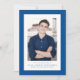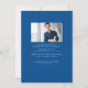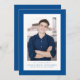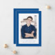Este anúncio de graduação simples e sofisticado apresenta uma foto vertical na frente rodeada por um quadro azul com efeito de tuitagem de osso herdado. A aparência do tecido (por favor, note que não é tecido real) lhe dá um estilo acadêmico clássico e o tipo simples é o toque personalizado perfeito. A parte traseira do cartão é um padrão azul correspondente com espaço para um segundo texto de convite para fotos e graduação. O texto e a foto também podem ser deixados em vazio. Esta placa de formando original de Lea Delaveris Design também está disponível como um download de lançamento de graduação digital e pode ser encontrada em uma variedade de cores na coleção de formando de tweed herringbone.