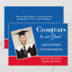Parabéns Formando Foto Azul Vermelho Branco 2025 Graduação. Uma design de tipografia e fotografia com letras brancas em um fundo azul com uma grande borda vermelha ao longo da borda inferior. Troque facilmente em sua própria foto de orientação para retratos, e o texto pode ser facilmente personalizado também em ambos os lados.