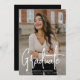 Anúncio de graduação moderno com sua foto vertical na frente com "Formando" exibido em uma camada branca de script manuscrito. Personalize a frente do anúncio de graduação de fotos com o nome do formando, o nome da escola e o ano de graduação. O simples anúncio de graduação é revertido para exibir uma foto adicional com espaço fornecido para incluir os planos futuros do formando, detalhes de graduação, etc. O anúncio da graduação de duas fotos é perfeito para segundos graus e formandos!