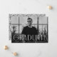 Anúncio simples de graduação com a foto horizontal do formando com "Formando" exibido em caracteres brancos e modernos de deco. Personalize a frente do anúncio de graduação em fotos do solteiro adicionando o nome do formando, a escola e o ano de formando. O anúncio é revertido para exibir um design de espiral geométrico preto e branco.