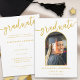 Celebre a Faculdade de Sua Filha ou a Graduação de segundo grau com um moderno trendy Arch Foto Gold Graduação Anúncio Honra a realização acadêmica de sua filha em estilo com esta elegante foto de arco do Modern College ou segundo grau Graduation Announement Card, projetada exclusivamente pela artista Catherine Sweetman. Este cartão de graduação personalizado apresenta a caligrafia tradicional de um roteiro dourado sobre um fundo branco clássico, criando um eterno e um visual sofisticado perfeito para qualquer formando. A frente da placa exibe o nome da sua filha e os detalhes da graduação em na moda dourado, enquanto o layout dourado em branco elegante adiciona um toque único e contemporâneo. Personalize facilmente o modelo com uma foto carinhosa do seu formando, fazer-o como uma verdadeira manutenção pessoal. O verso do cartão inclui espaço para detalhes adicionais de graduação ou uma mensagem sincera, definida em tipografia moderna para uma apresentação limpa e polida. Perfeito por enviar mensagens para amigos e familiares ou inclusive com convites para festas de formatura, este anúncio de graduação de fotos é uma na moda para compartilhar seu orgulho e alegria. Ideal para segundos graus, faculdade ou graduações universitárias, comentários de trabalho e outras celebrações de graduação, este cartão é uma forma memorável de marcar esse grande marco.