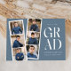 Anúncios de graduação em tendências apresentando uma fita com 6 fotos quadradas do formando. O "Formando" é apresentado em caracteres brancos modernos, com um fundo azul de ardósia (cor editável). Personalize a frente do anúncio de formatura multifoto, adicionando o nome do formando, o nome da escola e o ano de formatura. O lançamento é revertido para exibir texto adicional, como detalhes de graduação, planos futuros, informações sobre o partido, etc. O anúncio da graduação em na moda é perfeito para formandos de segundo grau e faculdade.
