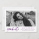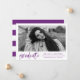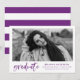 Anuncie sua formatura com nossos anúncios de graduação de na moda, Modern Watercolor Brush Script! Os modernos anúncios de graduação exibem a foto do formando moldada em branco com "formando" em um roteiro de pincel de aquarela roxa. Adicione o nome do formando, a escola, o ano de graduação e os planos futuros. O anúncio reverte para um fundo listrado roxo e branco com espaço para fotos e texto adicionais.