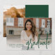 Anúncio de graduação moderno com sua foto horizontal na frente com "formando" exibido em uma cobertura de script verde manuscrita. Personalize a frente do anúncio de graduação de fotos com o nome do formando, o nome da escola e o ano de graduação. O simples anúncio de graduação é revertido para exibir uma foto adicional com espaço fornecido para incluir os planos de formando, detalhes de graduação, etc. O anúncio da graduação de duas fotos é perfeito para segundos graus e formandos!