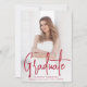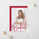 Anúncio de graduação moderno com sua foto vertical na frente com "Formando" exibido em uma cobertura de script vermelho manuscrito. Personalize a frente do anúncio de graduação de fotos com o nome do formando, o nome da escola e o ano de graduação. O simples anúncio de graduação é revertido para exibir uma foto adicional com espaço fornecido para incluir os planos de formando, detalhes de graduação, etc. O anúncio da graduação de duas fotos é perfeito para segundos graus e formandos!