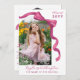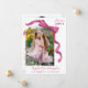 Bonito anúncio de graduação personalizado com uma foto em forma de arco adornada com uma fita bonito com um arco cor-de-rosa e, no verso, um texto personalizado sobre sua filha graduada. Anúncio de graduação de dois lados com fundo branco e arcos bonito cor-de-rosa. Modelo de anúncio de formatura feminina personalizado com foto e o nome do formando em um belo roteiro rosa.