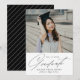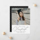Anúncio simples de graduação com a foto do formando no topo com o "Formando" exibido em um roteiro preto de caligrafia moderna, abaixo, sobre um fundo branco. Personalize a frente do anúncio de graduação de fotos adicionando o ano de graduação, o nome do formando e o nome da escola. A placa reverte para exibir um padrão de faixa diagonal preto e branco. O anúncio da graduação de 2025 é perfeito para formandos de segundo grau e de faculdade.