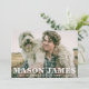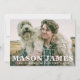 Simples cartão de anúncio de graduação com várias fotos. A frente tem o nome do formando em letras grandes em negrito junto com o ano de aula e o nome da escola sobre sua foto favorita. O fundo tem uma colagem com três fotos sobre um fundo de cinza média. O plano de fundo pode ser alterado para qualquer cor desejada. Esta design moderna é perfeita para um formando cara.