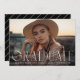 Anuncie sua formatura em estilo com nossos modernos anúncios de graduação de fotos. Os anúncios simples de graduação apresentam sua foto de mais velho horizontal favorita com "Formando", mostrada em uma camada de texto branca moderna. Personalize a frente dos anúncios de graduação de tendências, adicionando o nome do formando, o nome da escola e o ano de graduação. A placa reverte para exibir um design de striped preto e branco.