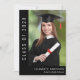 Anúncio de graduação em preto simples e elegante com tipografia branca moderna. A frente mostra uma foto do seu formando, do ano de aula, do nome dele e da escola. No verso, adicione uma foto adicional, uma mensagem de parabéns e uma mensagem mais pessoal, como os planos futuros do formando.
