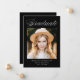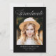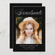 Anúncio de graduação elegante com "Formando" exibido no topo em um roteiro de caligrafia branco com fundo preto. A design apresenta a foto do formando com o nome do formando, o nome da escola e o ano de graduação mostrados abaixo. O anúncio de graduação de fotos reverte para exibir texto opcional, como planos futuros, detalhes de festa de formatura, etc. O anúncio de formatura em chic é perfeito para anunciar a graduação de formandos segundos graus e universitários.