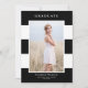Anuncie sua formatura com este anúncio personalizável de graduação de fotos. Apresenta um padrão de listras preto e branco. Personalize este anúncio de graduação moderno adicionando uma foto, nome, escola, ano e outros detalhes. Este cartão de anúncio de graduação de fotos está disponível em outros estoques de cartão.