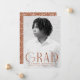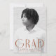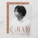 Comemore a conquista do seu formando com este anúncio de graduação moderno e na moda. Apresentando a foto vertical do formando, o "Formando" é mostrado em letras modernas e coloridas de ferrugem, para uma aparência moderna e sofisticada. Personalize a frente deste anúncio com fotos de solteiro adicionando o nome do formando, a escola e o ano de graduação para um toque pessoal. O verso do anúncio apresenta uma ferrugem cônica e um design de espiral geométrica branca, oferecendo uma torção contemporânea. Perfeito para formandos segundos graus e universitários, este anúncio elegante é uma forma excelente de compartilhar esse marco importante com a família e os amigos.