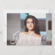 Anuncie sua conquista especial do formando com nossos anúncios de graduação do Momentous Script. Os anúncios de graduação em na moda apresentam uma fonte moderna de script de caligrafia que sobrepõe a foto favorita do mais velho do formando. Personalize os modernos anúncios de graduação com o nome do formando, o nome da escola e o ano de graduação. O verso do anúncio apresenta um fundo estriado diagonal desenhado à mão em verde sage.