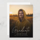 Comemore sua graduação com este anúncio de fotos moderno e elegante da cobertura de scripts. Apresentando um roteiro de caligrafia manuscrito e uma cobertura de texto branco, este anúncio é perfeito para formandos da faculdade ou do segundo grau que desejam uma maneira única e formal de compartilhar sua conquista com amigos e familiares. Basta adicionar sua foto favorita e personalizar os detalhes de um toque personalizado.