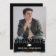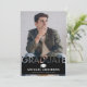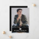 Cartão de anúncio da graduação em preto de tendências que inclui uma imagem do formando, uma motherboard e um modelo de texto moderno que é fácil de personalizar.
