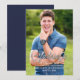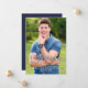 Anúncio de Graduação de Foto Faux Foil da Tendy e Chic com um design de texto ousado e moderno de tipografia de folha prateada. Este anúncio de na moda e fotos elegantes é muito fácil de personalizar com uma foto e seus detalhes de formando. Localize mais opções de personalização clicando em Personalizar, onde você pode alterar a cor do plano de fundo no lado de trás do convite.