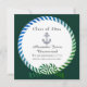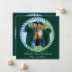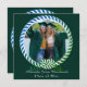 Cartão de anúncio de Graduação de Foto Azul e Verde Moderno 1. Com design repetido e detalhes personalizáveis no verso.