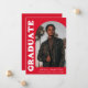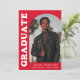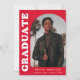 Anúncio de graduação de na moda e tendência apresentando a foto do formando na frente com um quadro de fotos de arco de offset. O "Formando" é apresentado em caracteres brancos retrorreflectores a negrito num fundo vermelho. Personalize a frente do anúncio de graduação em fotos de arco adicionando o nome do formando, a escola e o ano de graduação. O cartão se reverte para exibir 3 fotos adicionais com espaço para texto personalizado, como futuros planos de faculdade, planos de carreira, detalhes de festa de formatura, etc. O anúncio de formatura vermelha é perfeito para formandos segundos graus e universitários.