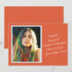 Celebre seu graduado com estilo com este cartão de foto de terracota laranja quente com texto em letra cursiva branca retrô. Este design combina uma mensagem sincera com uma foto pessoal para um anúncio memorável que é clássico e moderno. Ideal para estudantes que desejam que sua personalidade brilhe com uma borda ousada e colorida.