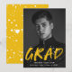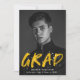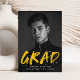 Anuncie sua formatura com nossos anúncios de graduação de fotos do Modern Paint Splatter. O design apresenta a foto vertical do formando com "Formando" em letras amarelas com placas brancas de tinta. Personalize a frente dos anúncios de graduação criativa adicionando o nome do formando, o nome da escola e o ano de graduação. A parte de trás do anúncio apresenta um fundo amarelo com placas brancas de tinta. O design é perfeito para usar tanto para segundos graus como para formandos universitários.