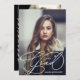 Sua foto, seu nome, ano de graduação e a palavra Formando em letras brancas em chic na frente, esses anúncios de graduação apresentam seus detalhes e outra foto no fundo QUALQUER COR que se adapte à sua foto. Mais estilos, tamanhos, cartões salve a data, convites em nossa loja.