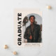 Anúncio de graduação de na moda e tendência apresentando a foto do formando na frente com um quadro de fotos de arco de offset. O "Formando" é apresentado a negrito em letras pretas, com a inscrição retrorreflectora num fundo de marfim creme. Personalize a frente do anúncio de graduação em fotos de arco adicionando o nome do formando, a escola e o ano de graduação. O cartão se reverte para exibir 3 fotos adicionais com espaço para texto personalizado, como futuros planos de faculdade, planos de carreira, detalhes de festa de formatura, etc. O anúncio da graduação em creme é perfeito para formandos de segundo grau e de faculdade.