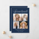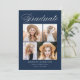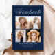 Anúncio de graduação elegante com "Formando" exibido no topo em um roteiro de caligrafia branco com fundo de marinho. O design apresenta quatro fotos do formando exibidas em um layout colage com o nome do formando, o nome da escola e o ano de graduação mostrado abaixo. O anúncio de 4 fotos de graduação é revertido para exibir texto opcional, como planos futuros, detalhes de festa de formatura, etc. O anúncio de formatura em chic é perfeito para anunciar a graduação de formandos segundos graus e universitários.