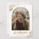 Este moderno Anúncio de Graduação de Fotos Archadas Florais é a forma perfeita de anunciar seu grande dia. Vamos comemora suas conquistas espalhando as boas notícias! Meu Anúncio de Graduação de Foto Arranqueada Floral Moderna apresenta uma imagem vertical arquivada na frente e três imagens quadradas na parte traseira da placa. Convide amigos e família para comemorar com este convite moderno. Você pode personalizar o nome e as informações da escola na frente do cartão. Toda a cópia de retorno pode ser personalizada para que você possa adicionar sua própria mensagem e informações na parte traseira do cartão. Carregue suas próprias fotos na parte de trás e na frente do cartão para um anúncio perfeito.