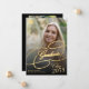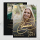 Anúncio de graduação em na moda-preto e ouro de Elegante clássico com script de caligrafia em segundo grau universitário na faculdade com 2 fotos personalizadas e modelo de texto.