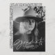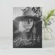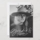 Anúncio de graduação moderno apresentando a foto vertical do formando com "Formando" em uma camada branca de script na moda. Personalize a frente do anúncio de graduação de fotos adicionando o nome do formando, o nome da escola e o ano de graduação. O verso do anúncio da graduação da tendência apresenta um padrão branco e preto desenhado à mão.