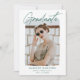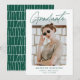 Anúncio de graduação da Tendy com a foto do formando enquadrada por uma borda branca e dura. "Formando" é exibido em um script de assinatura verde com o nome do formando, o nome da escola e o ano de graduação mostrado abaixo. O anúncio de graduação moderno se inverte para exibir um padrão único de linha verde e branco estampado. Este cartão de anúncio de graduação de fotos é perfeito para segundos graus e formandos.