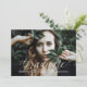 Anúncio de Graduação de Fotos de Script Delicado Moderno e elegante com um simples design de caligrafia manuscrito em branco. Esse anúncio de graduação em quadrinhos e na moda é fácil de personalizar com uma foto do formando e seus detalhes de graduação. Localize mais opções de personalização clicando em Personalizar onde você altera a cor do plano de fundo e/ou remove o plano de fundo do padrão de latência no lado de trás do convite.
