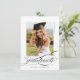 Apresentação do Anúncio de Graduação Branca Preta de Script Elegante Moderno de Orçamento apresenta um roteiro bonito e elegante, juntamente com os detalhes do seu partido e a sua foto de cheio no verso.