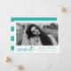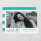 Anuncie sua formatura com nossos anúncios de graduação de na moda, Modern Watercolor Brush Script! Os modernos anúncios de graduação exibem a foto do formando moldada em branco com "formando" em um script de escova de cor da água turquesa de tendência. Adicione o nome do formando, a escola, o ano de graduação e os planos futuros. O anúncio reverte para um fundo listrado branco e turquesa com espaço para fotos e texto adicionais.
