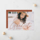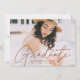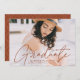 Comemore o formando com nosso anúncio de graduação em na moda. O anúncio de graduação exibe a foto do formando com "Formando" em uma cobertura de roteiro de caligrafia moderna do terracotta. Personalize a frente do anúncio de graduação moderno adicionando o nome do formando, o nome da escola e o ano de graduação. O anúncio inverte para apresentar uma tendência de terracota e um padrão geométrico pontilhado branco. O design é perfeito para segundos graus e formandos universitários.